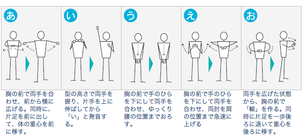 それでは、下のイラストが「あいうえお」体操です。